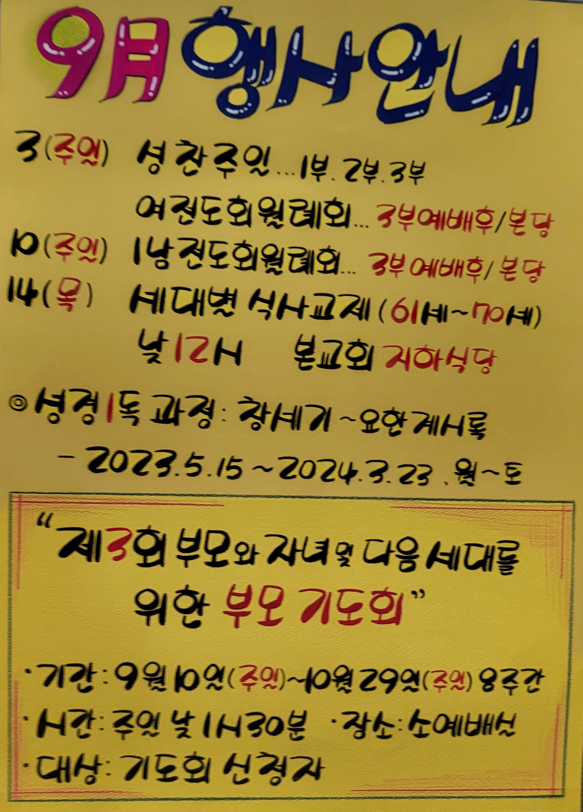 9월 교회행사