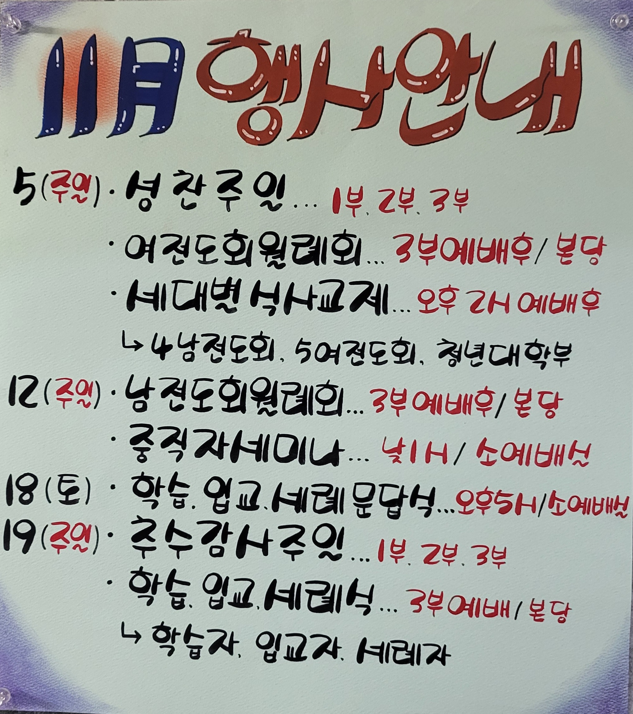 11월 교회행사