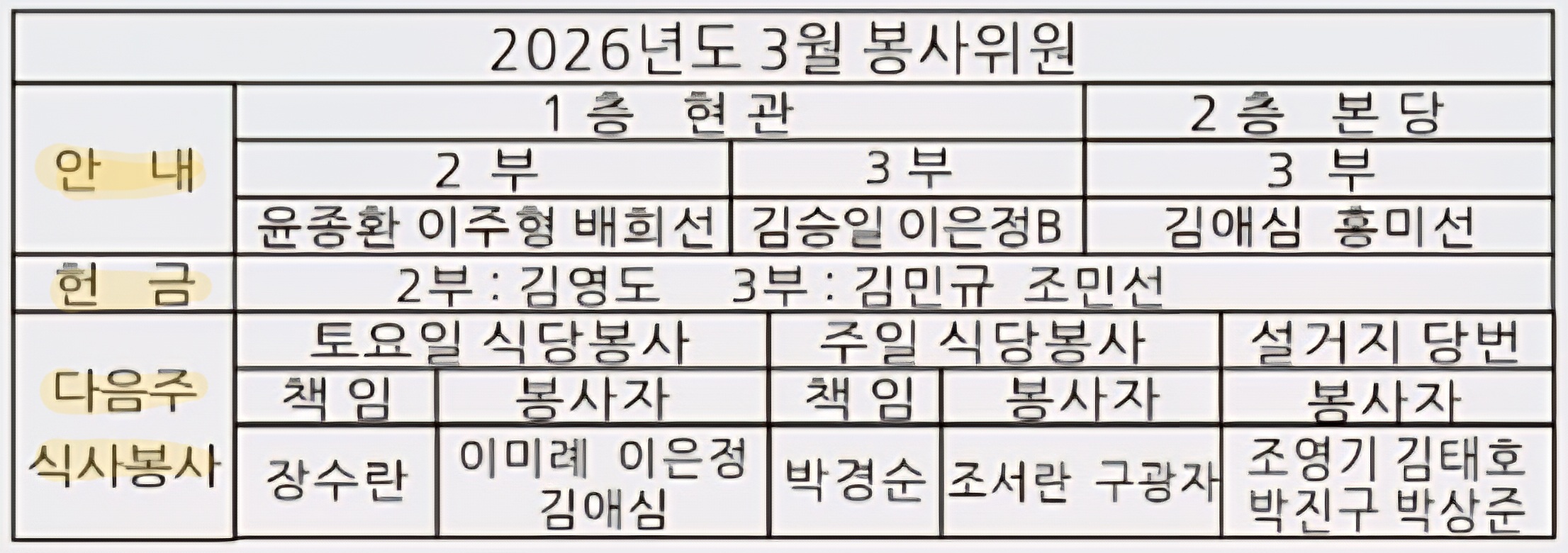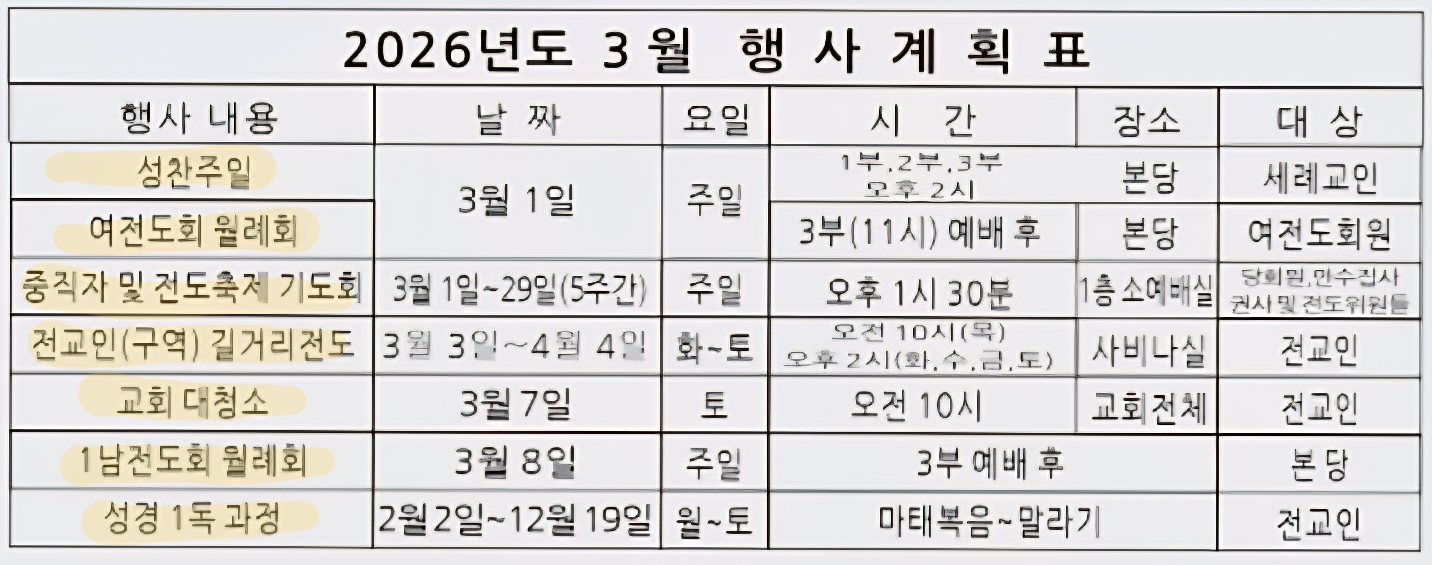 2026년 3월 교회행사