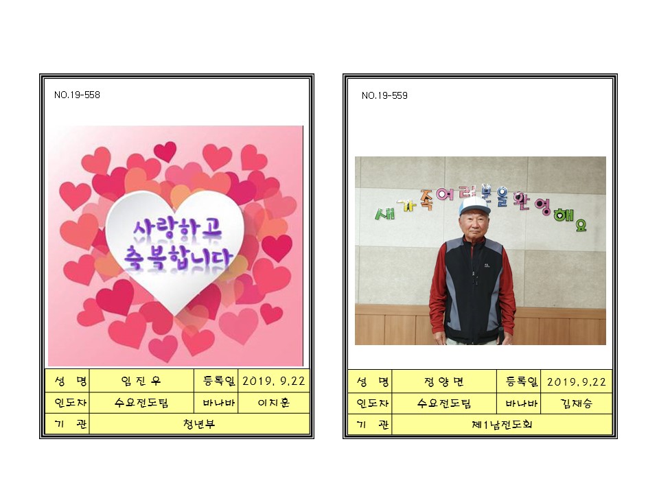 2019년9월15일새가족 (환영하고 축복합니다)