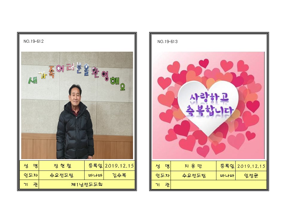 2019년12월15일새가족( 환영하고 축복합니다)